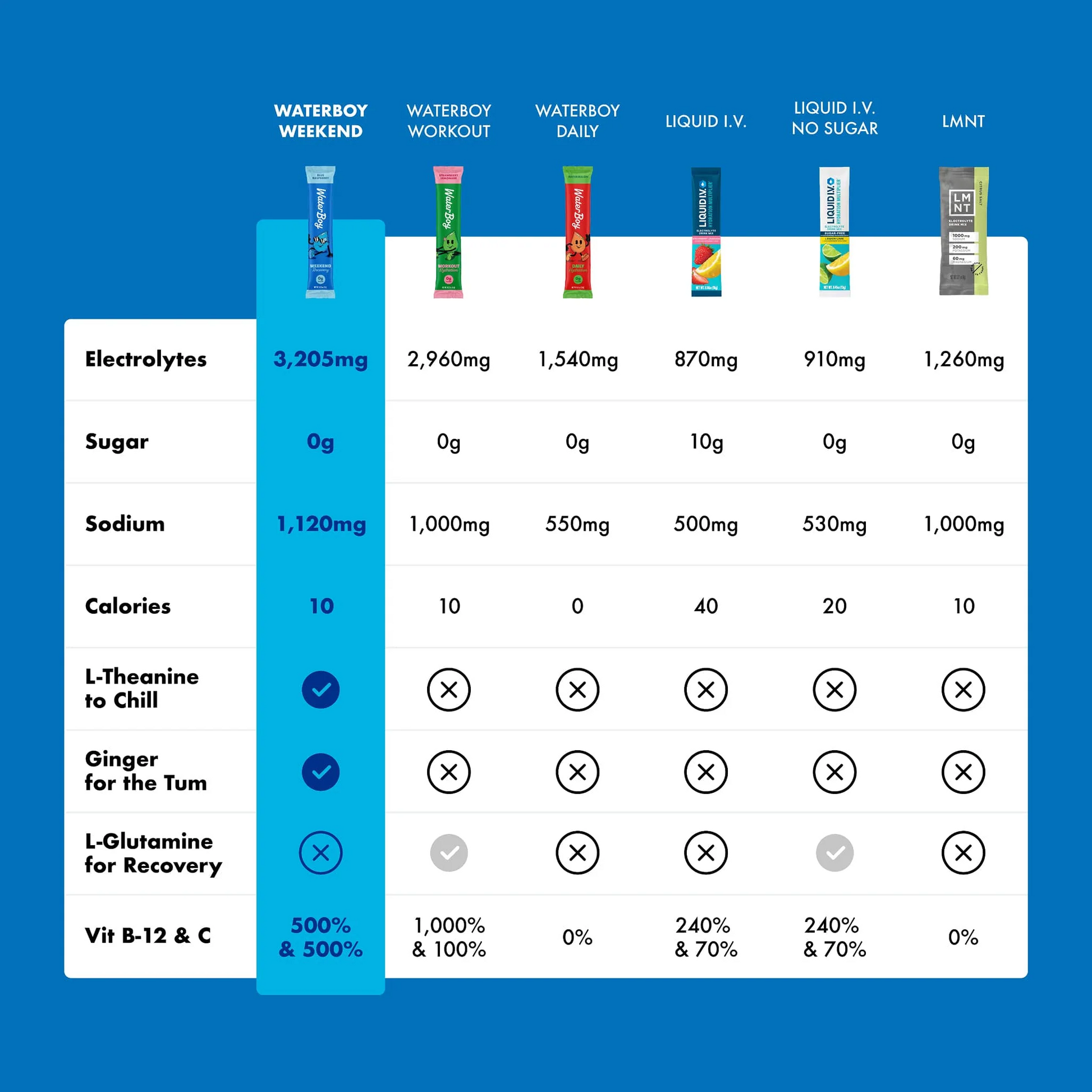 No average, one-dehydration-fits-all product sold here. - We have 3x+ more electrolytes than our main competitor who shall not be named but rhymes with Shmiquid SmIV.